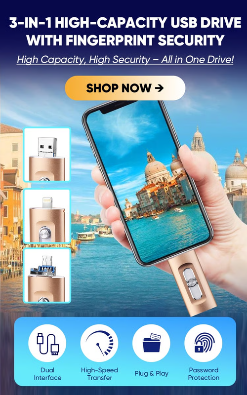3-IN-1 HIGH-CAPACITY USB DRIVE WITH FINGERPRINT SECURITY