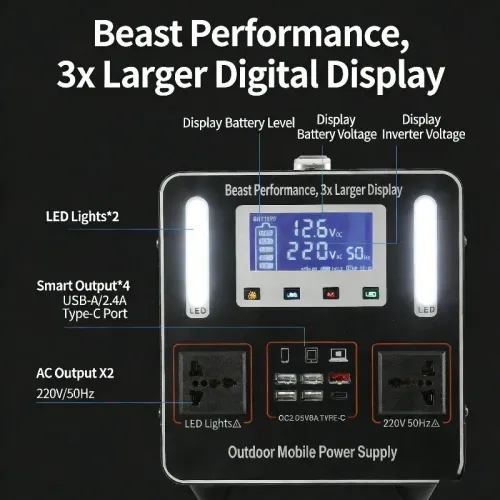 500W 500Wh Portable Power Station or 40W Solar Panel 220V LiFePO4 Battery Emergency Backup Power Supply for Camping Home Outdoor