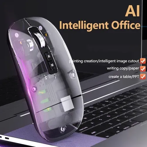 AI Smart Mouse Transparent Wireless Mouse V16 with Voice Typing, Translation, and Creative Functions powered by multiple AI large language models including DeepSeek.
