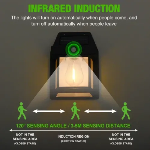 Outdoor solar wall lamp, waterproof tungsten filament light, motion sensor garden light, suitable for gardens, villas, and small houses (includes 2 lamps).